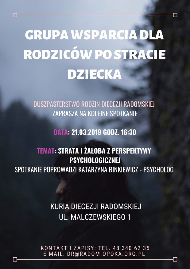 Piszę o tym nieprzypadkowo. W Radomiu ruszyła właśnie GRUPA WSPARCIA DLA RODZICÓW PO STRACIE DZIECKA. Grupa organizowana przez Duszpasterstwo Rodzin Diecezji Radomskiej to pierwsza taka grupa w Radomiu. Spotkania odbywające się raz w miesiącu prowadzone będą przez specjalistów różnych modalności.