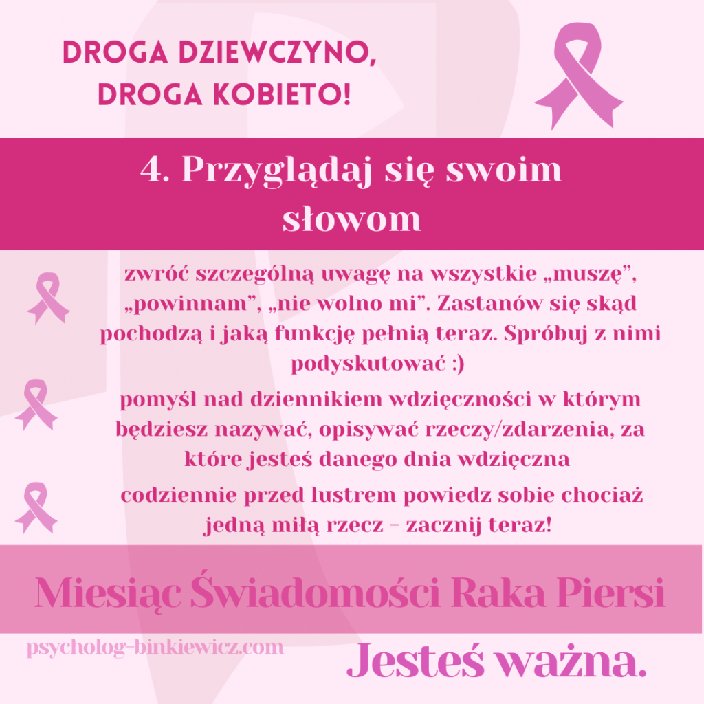 Różowy Październik to szczególny czas zwrócenia uwagi na profilaktykę nowotworową. Pamiętając o profilaktyce nowotworowej, warto zatrzymać się i z uwagą i łagodnością poświęcić ten czas na zaopiekowanie się całym swoim organizmem. Przy okazji trwającego Miesiąca Świadomości Raka Piersi przez kilka najbliższych dni będą pojawiały się tutaj małe wskazówki-inspiracje, co warto zrobić dla siebie – swojego zdrowia fizycznego i psychicznego w tym wyjątkowym, różowym czasie. 💕